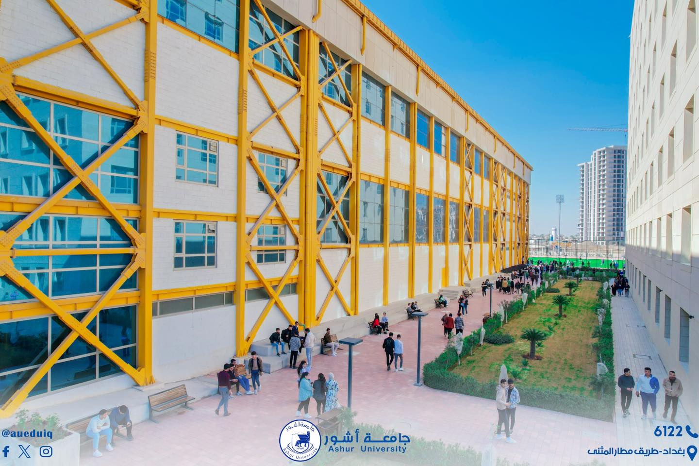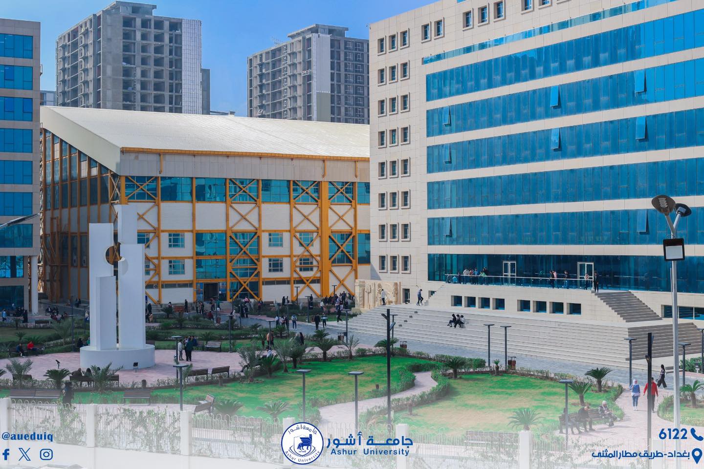 واحد من أهم التصاميم المعمارية على مستوى العراق والذي جعل من جامعــة آشـــــور منارة حضارية بلمسة معمارية متطورة رسمت ملامح جامعــة آشـــــور التي شهد بجمال بناها التحتية ودقتها مجمع