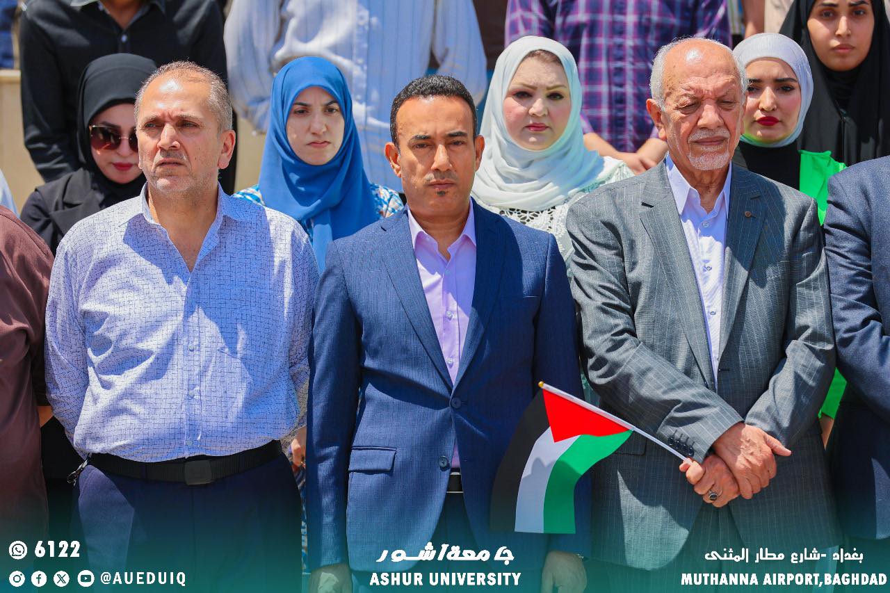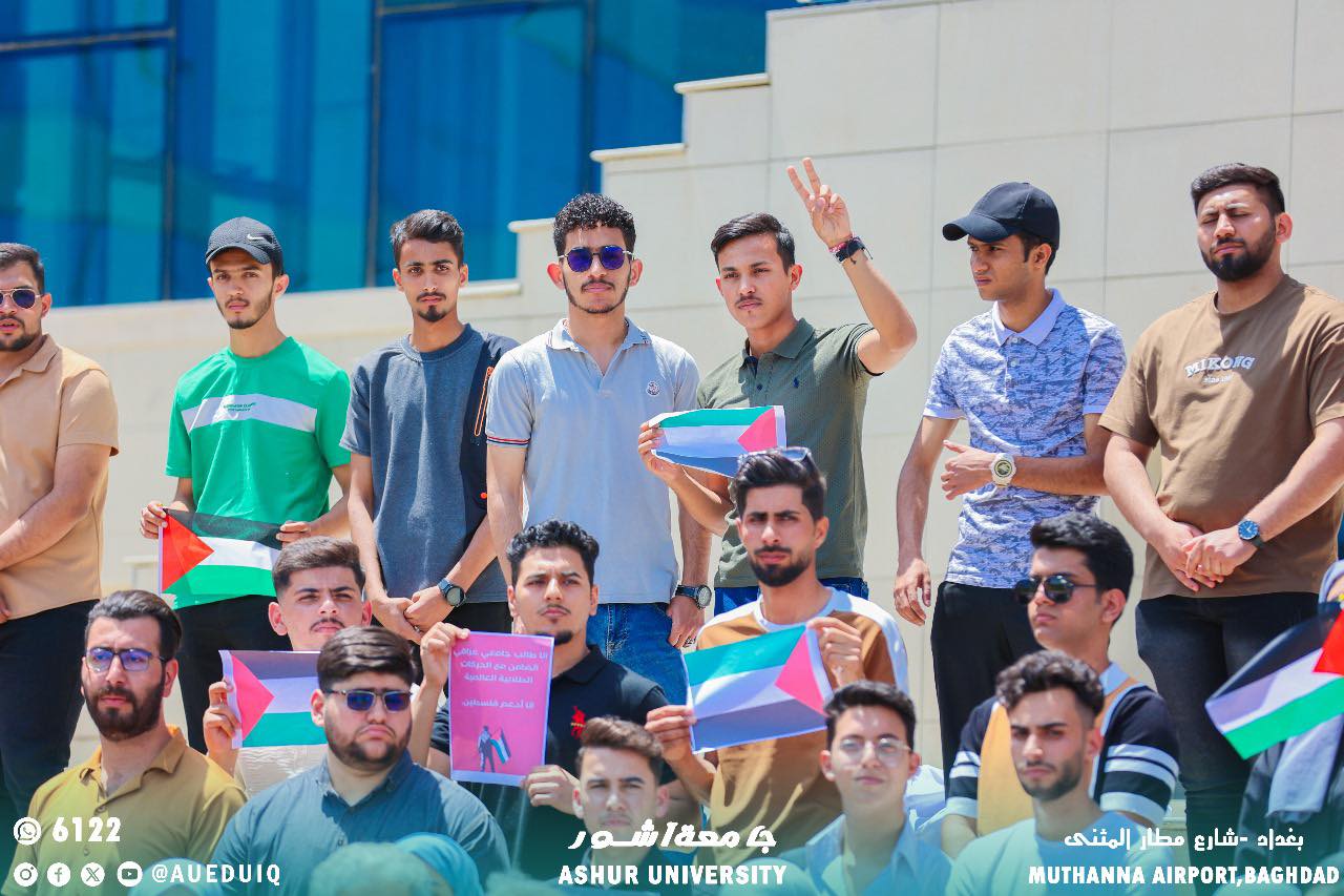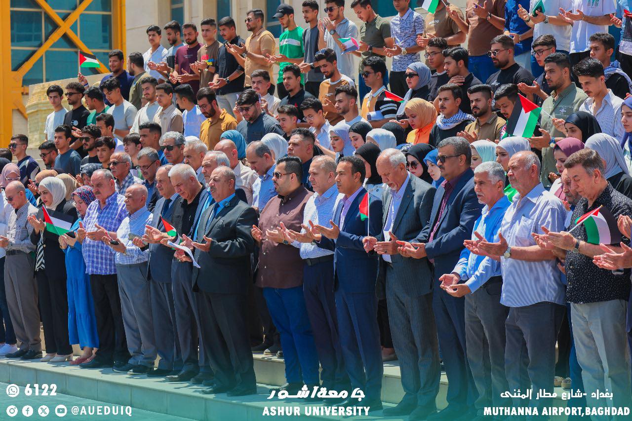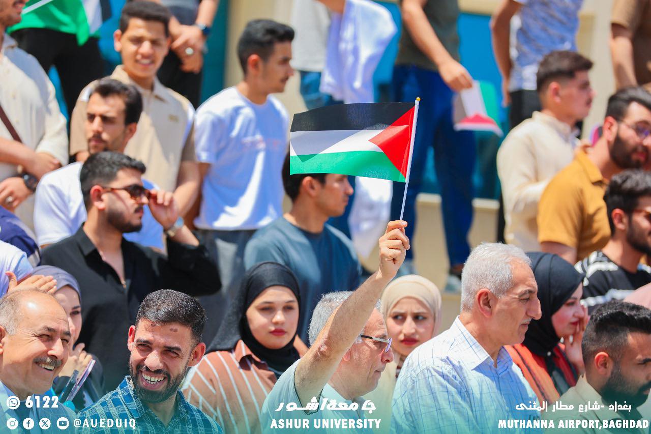 تضامنا مع اهلنا الصابرين والمج_اهدين في فلس_طين العربية ومؤازرة لابطال غ_زة وشعبها الصابر المج_اهد وتاييدا لضربات المق_اومة الفلس_طينية على الارض يقف اليوم السبت الموافق ٤/ ٥/ ٢٠٢٤ اساتذة وطلبة وموظفي جامعة اشور وقفة تضامنية مع قضية فلس_طين العادلة ودعما لصمود شعبنا الفلس_طيني في مق_اومة العدوان الصه_يوني ومجا_زره الوح_شية بحق الأطفال والنساء والشيوخ في غ_زة الع_زة