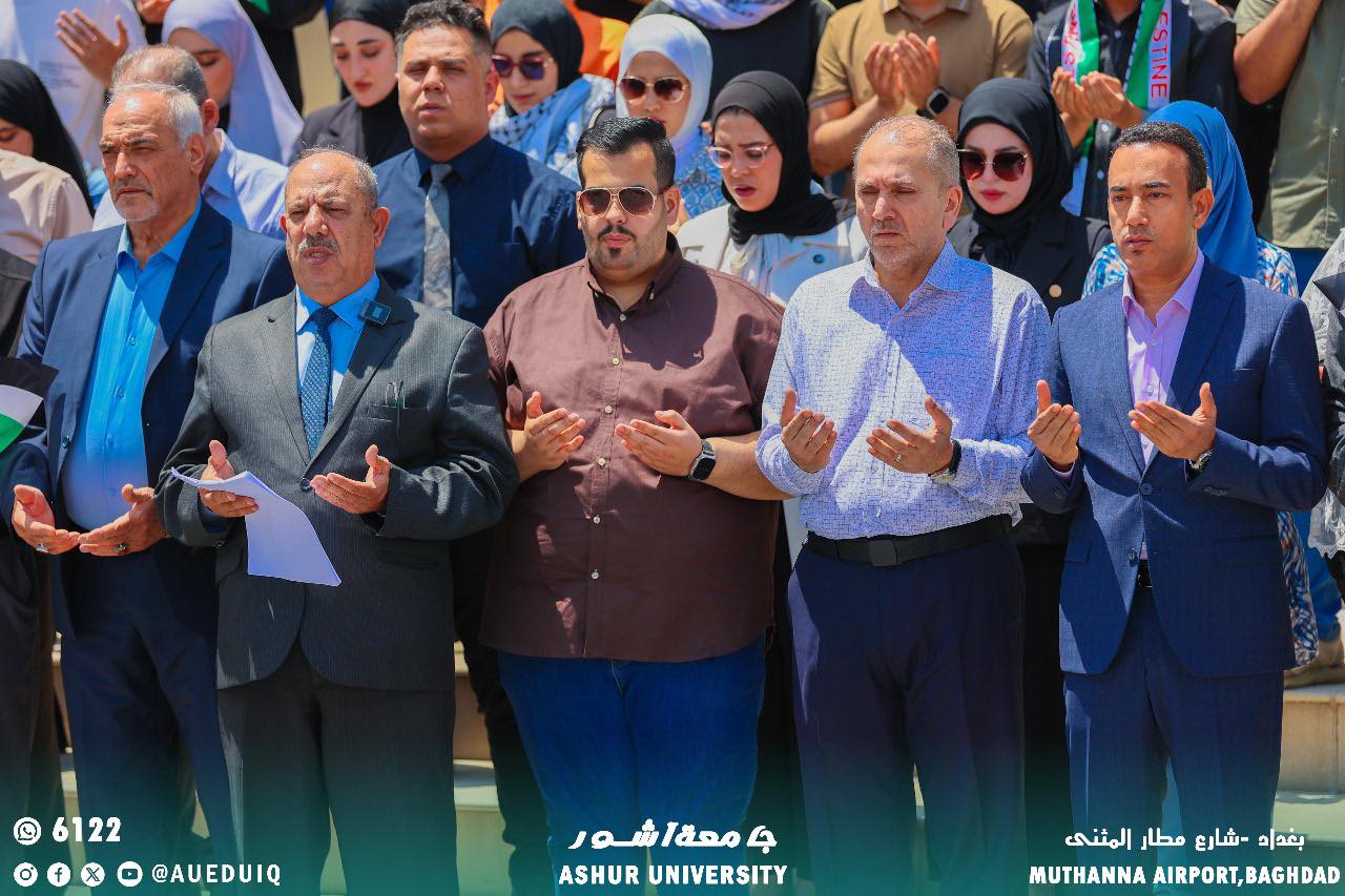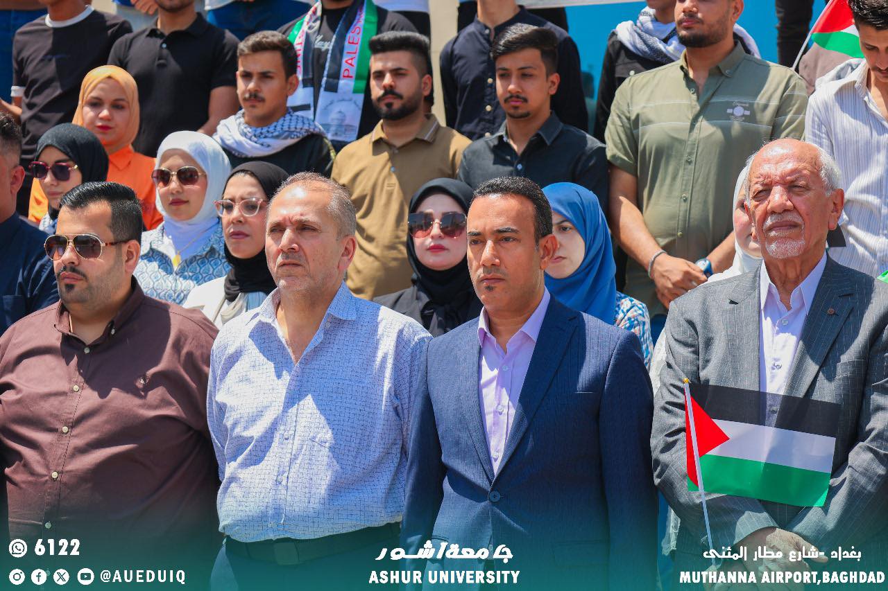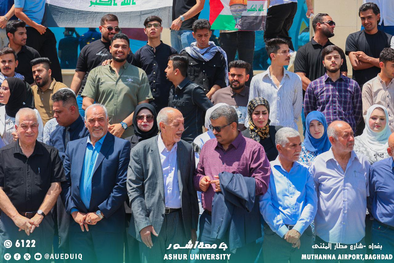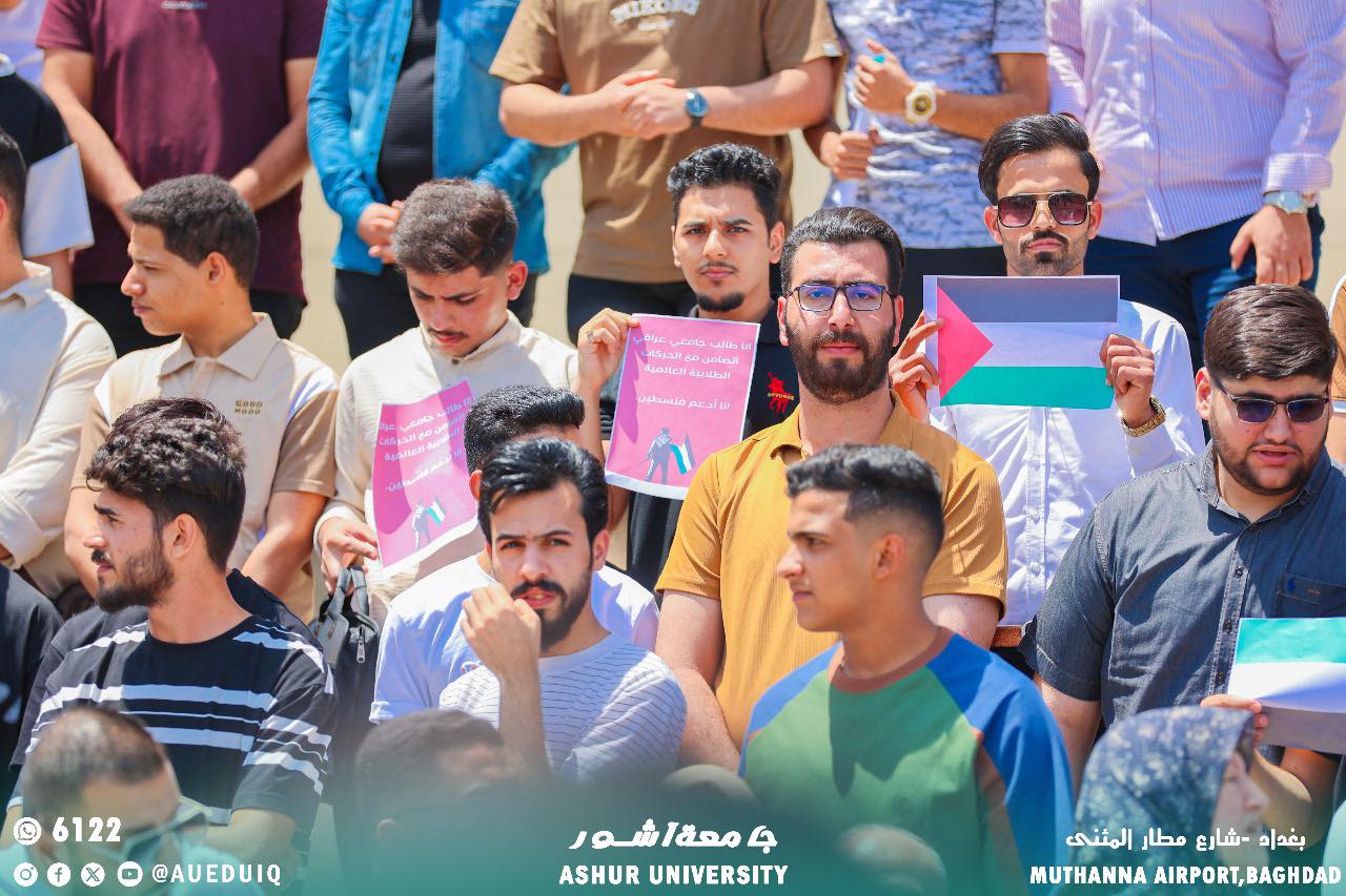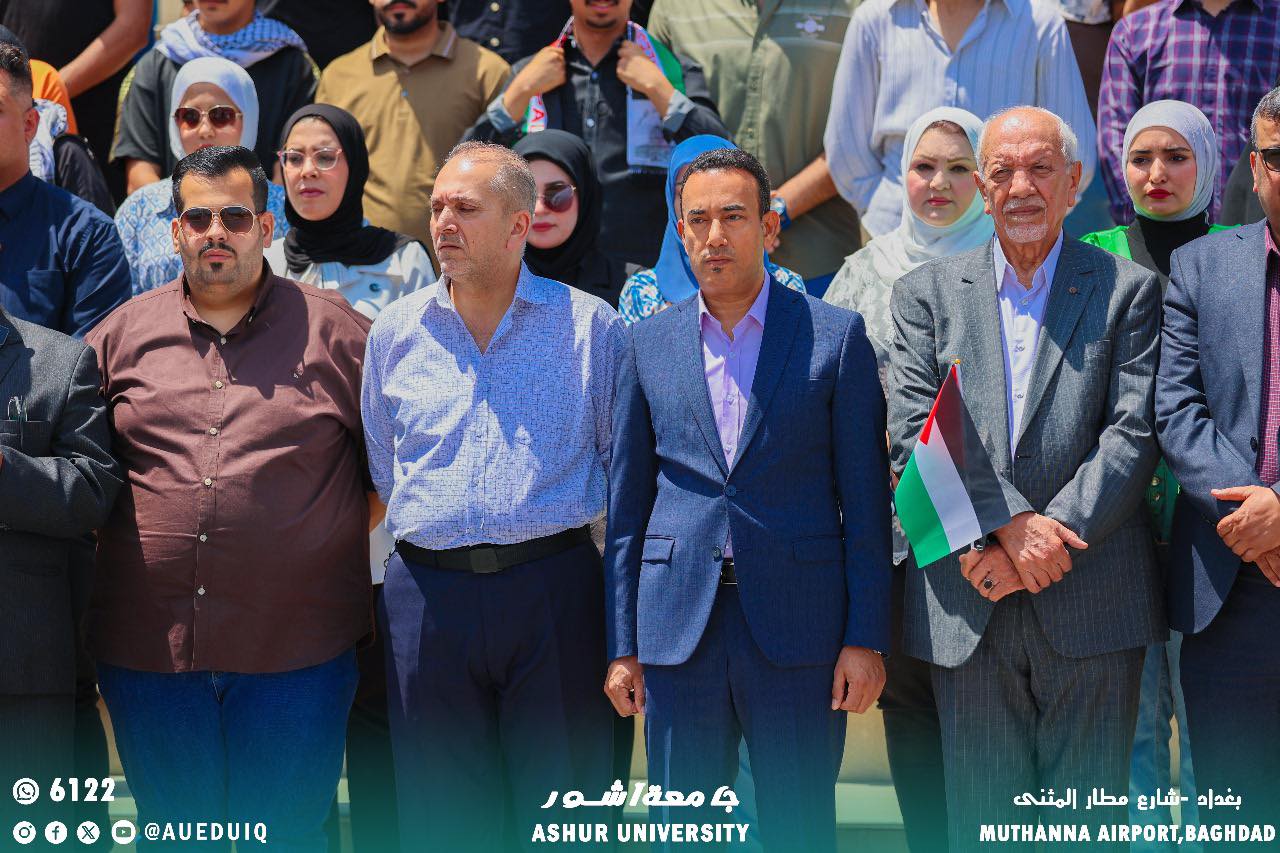تضامنا مع اهلنا الصابرين والمج_اهدين في فلس_طين العربية ومؤازرة لابطال غ_زة وشعبها الصابر المج_اهد وتاييدا لضربات المق_اومة الفلس_طينية على الارض يقف اليوم السبت الموافق ٤/ ٥/ ٢٠٢٤ اساتذة وطلبة وموظفي جامعة اشور وقفة تضامنية مع قضية فلس_طين العادلة ودعما لصمود شعبنا الفلس_طيني في مق_اومة العدوان الصه_يوني ومجا_زره الوح_شية بحق الأطفال والنساء والشيوخ في غ_زة الع_زة