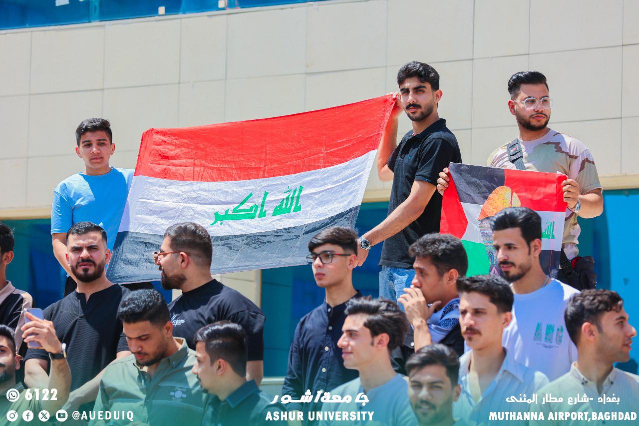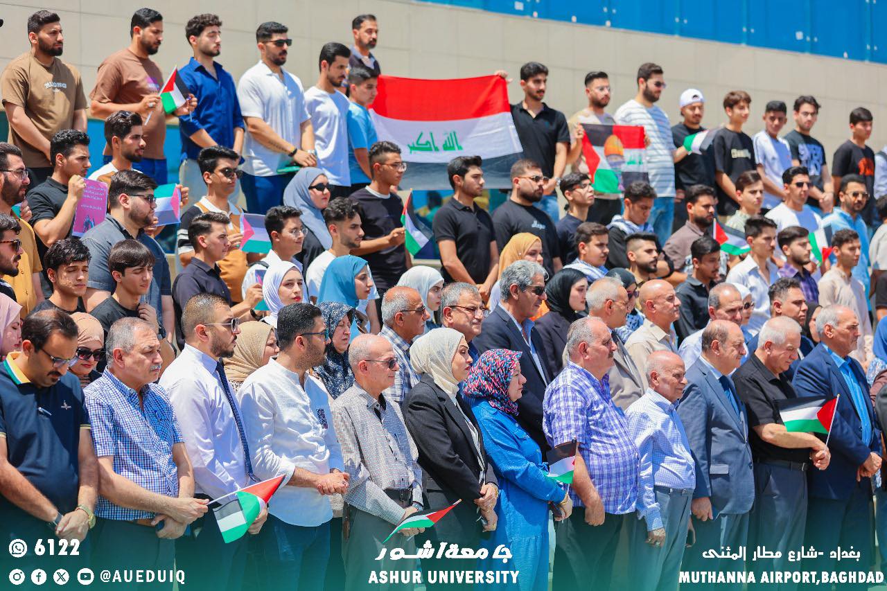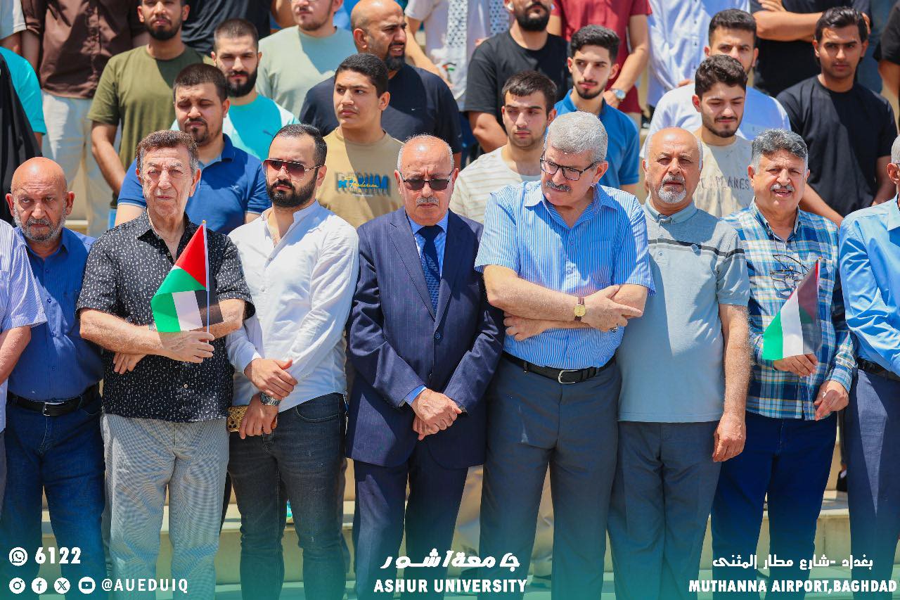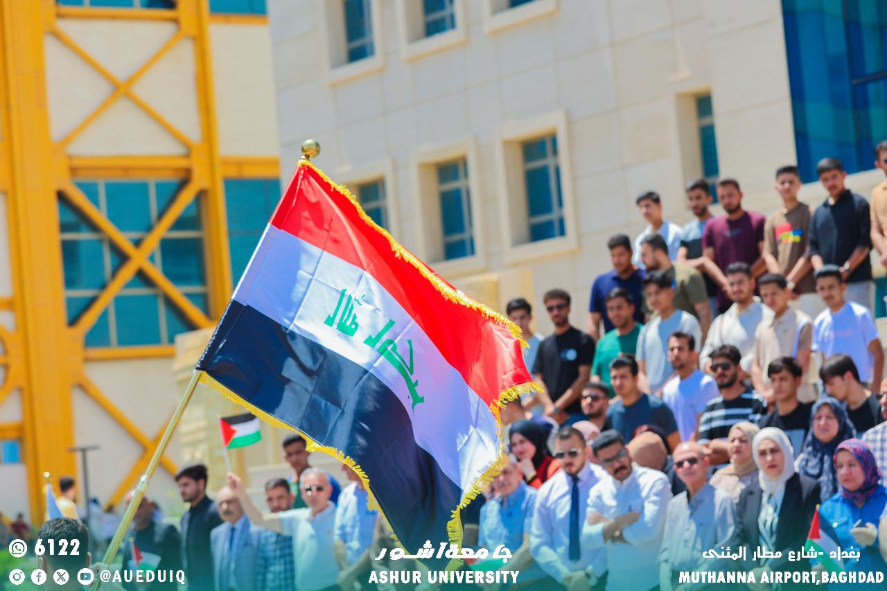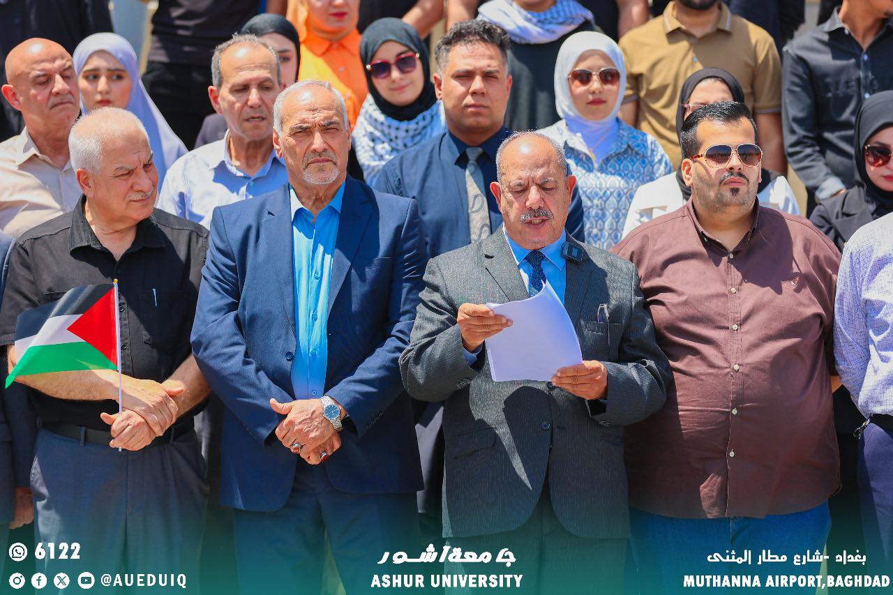 تضامنا مع اهلنا الصابرين والمج_اهدين في فلس_طين العربية ومؤازرة لابطال غ_زة وشعبها الصابر المج_اهد وتاييدا لضربات المق_اومة الفلس_طينية على الارض يقف اليوم السبت الموافق ٤/ ٥/ ٢٠٢٤ اساتذة وطلبة وموظفي جامعة اشور وقفة تضامنية مع قضية فلس_طين العادلة ودعما لصمود شعبنا الفلس_طيني في مق_اومة العدوان الصه_يوني ومجا_زره الوح_شية بحق الأطفال والنساء والشيوخ في غ_زة الع_زة