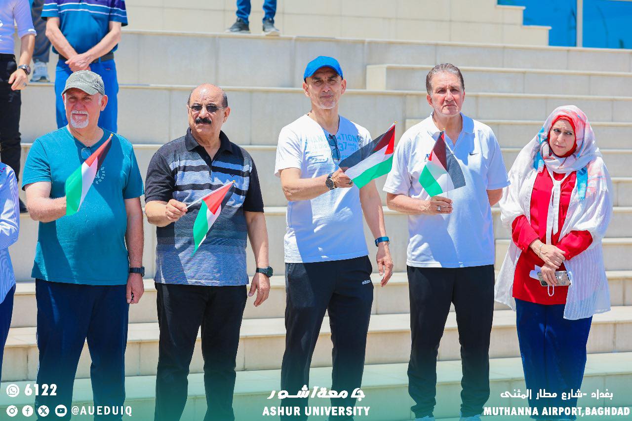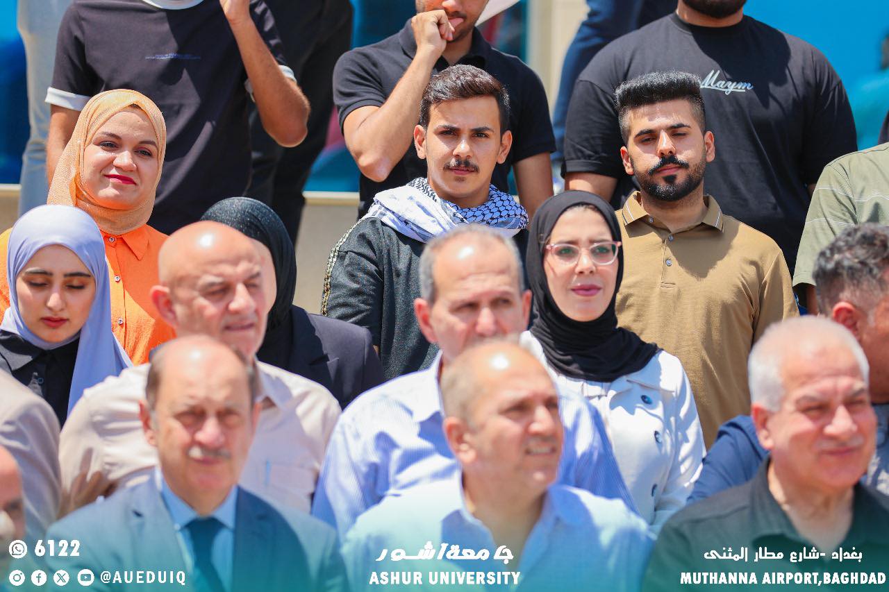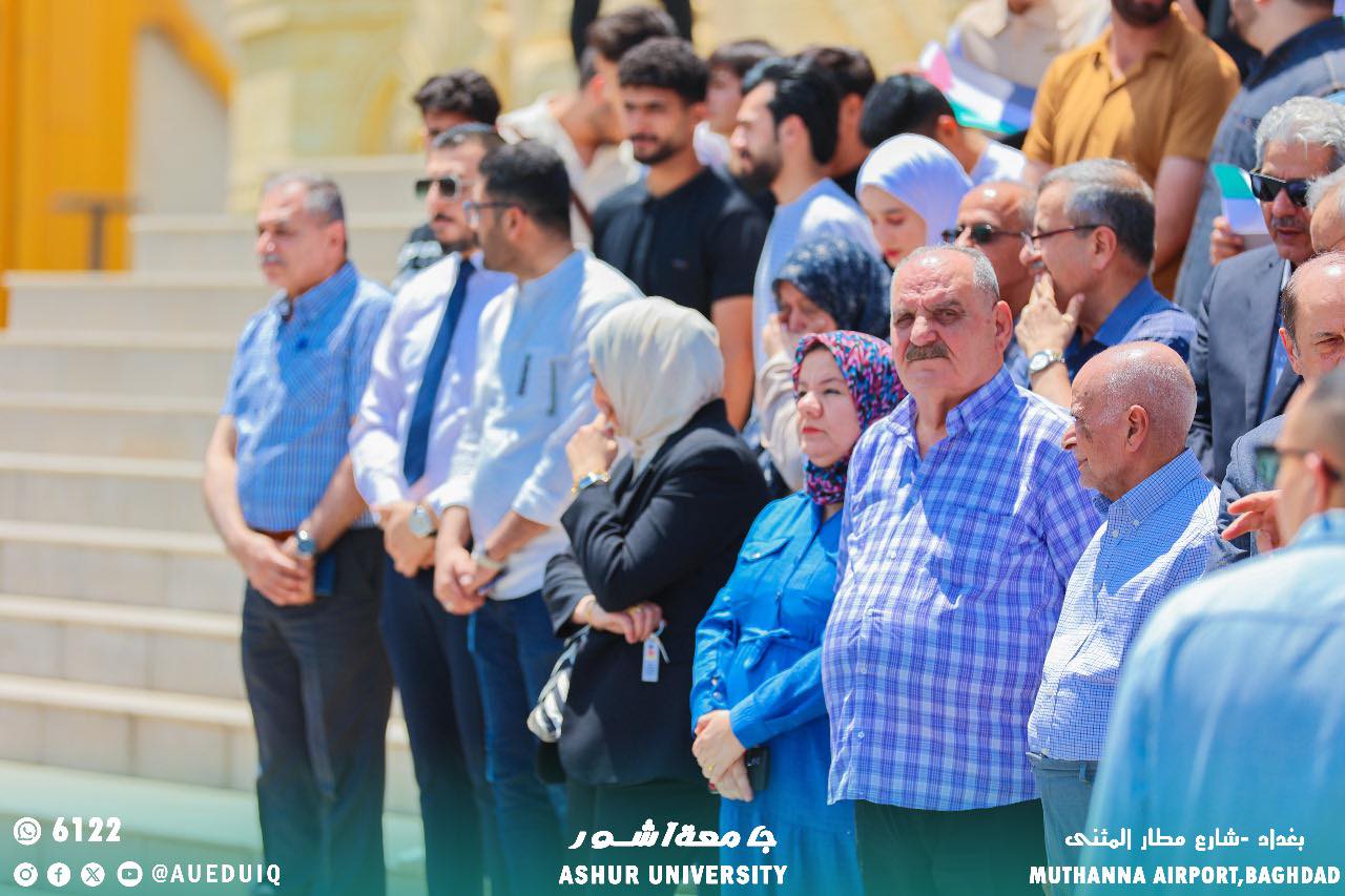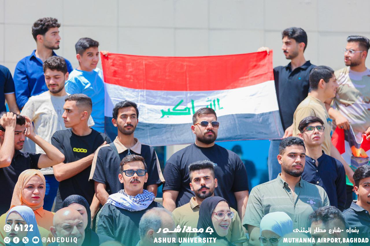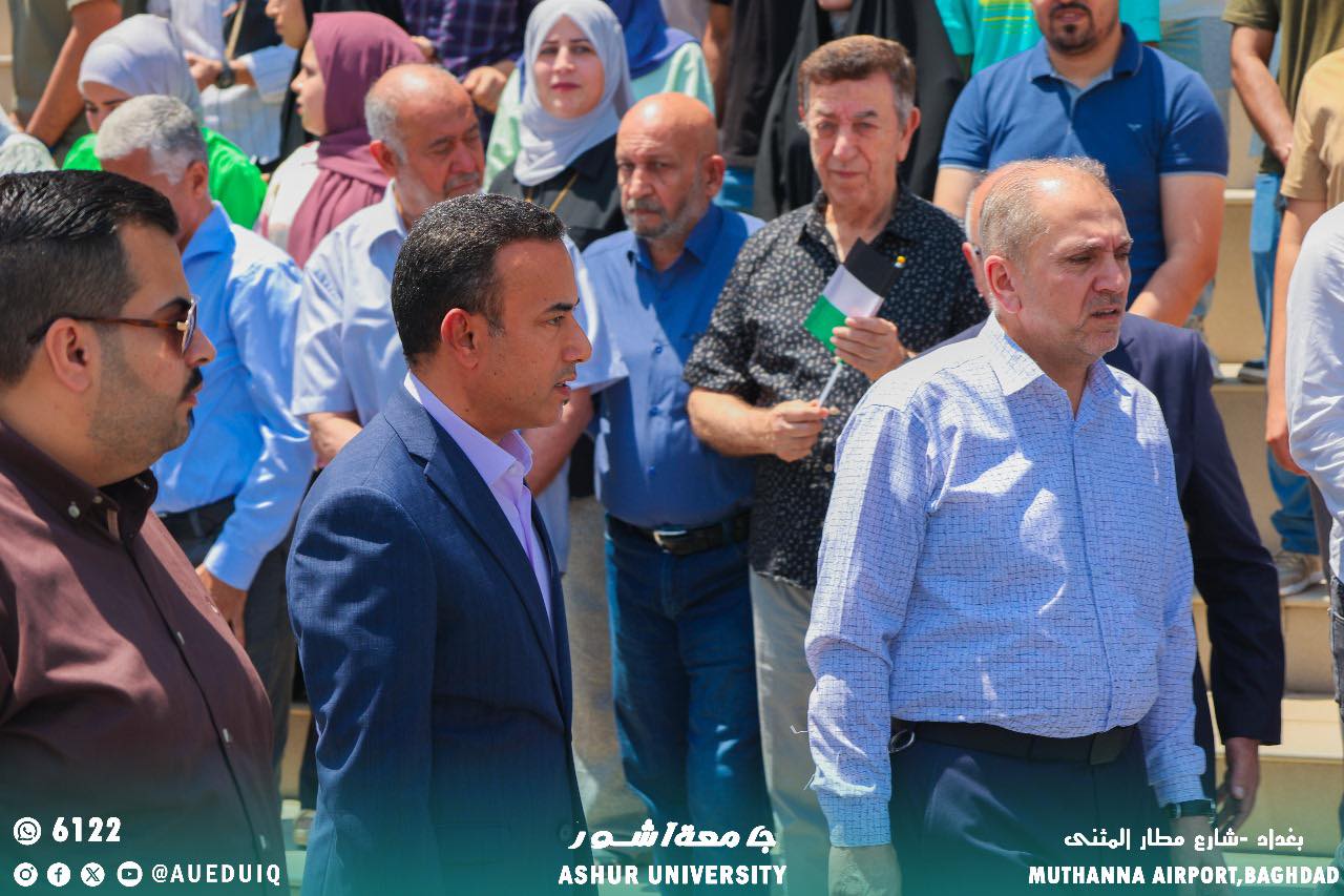 تضامنا مع اهلنا الصابرين والمج_اهدين في فلس_طين العربية ومؤازرة لابطال غ_زة وشعبها الصابر المج_اهد وتاييدا لضربات المق_اومة الفلس_طينية على الارض يقف اليوم السبت الموافق ٤/ ٥/ ٢٠٢٤ اساتذة وطلبة وموظفي جامعة اشور وقفة تضامنية مع قضية فلس_طين العادلة ودعما لصمود شعبنا الفلس_طيني في مق_اومة العدوان الصه_يوني ومجا_زره الوح_شية بحق الأطفال والنساء والشيوخ في غ_زة الع_زة
