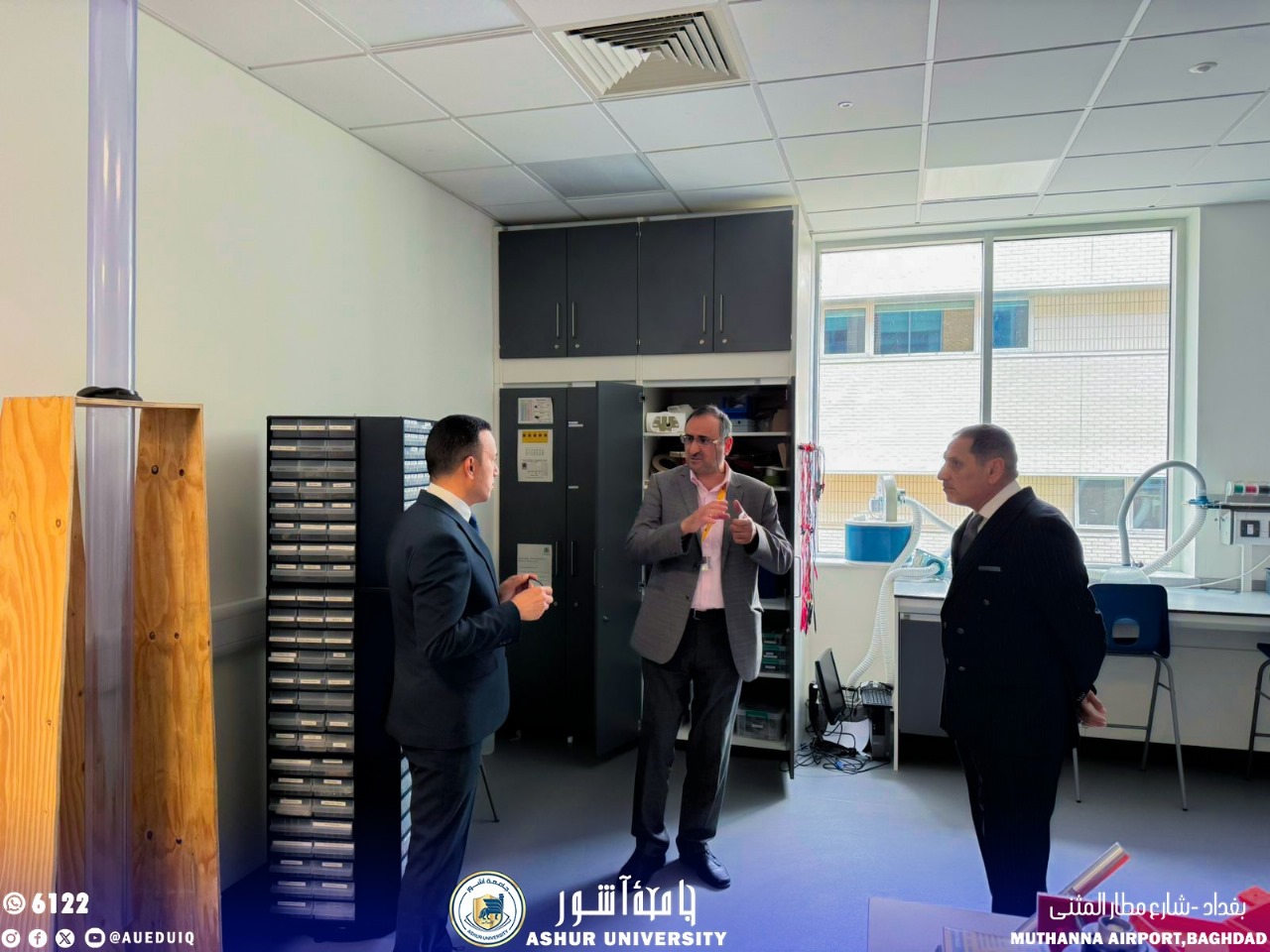 زار السيد رئيس جامعة اشور الاستاذ الدكتور كاظم عبود عيسى الماجدي كلية الهندسة في جامعة لنكن البريطانية والتقى بعميد الكلية البروفسور رفدر الكسندر بورمان الذي رحب بهذه الزيارة لاهميتها كونها الزيارة الاولى لرئيس جامعة اشور وبعد الترحيب اصطحب السيد عميد كلية الهندسة السيد رئيس الجامعة للاطلاع على المناهج الدراسية والمختبرات العلمية والبنى التحتية للكلية واكد عميد الكلية البروفيسور بورمان على التعاون بين كلية الهندسة جامعة لنكن وكليات الهندسة في جامعة اشور وان ابواب كليه الهندسة مفتوحة لطلبة كليات الهندسة في جامعه اشور للتدريب وغيرها من الامور التي تضيف وتعزز الخبرات للطلبة