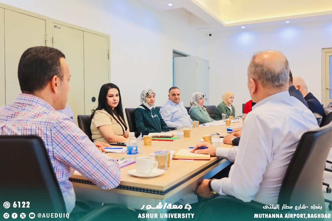 برعاية السيد رئيس الجامعة الأستاذ الدكتور كاظم عبود الماجدي تم اجتماع اللجنة المشرفة على تطبيق معايير الاعتماد المؤسسي في جامعة اشور وعقدت اللجنة اجتماعها ليوم الثلاثاء المصادف ٢٠٢٤/٤/٢٣ بحضور عدد من السادة المساعدين والسيد مدير قسم ضمان الجودة والأداء الجامعي مع اللجان الفرعية لتقييم وتطبيق معايير الاعتماد المؤسسي الوطني وتم خلال الاجتماع مناقشة مراحل إنجاز خطة العمل واليات التقييم والتنفيذ لضمان التطبيق الشامل للمشروع أعلاه وفق الخطة الزمنية المحدده للوصول الى مرحلة التقدم للحصول على الاعتماد. المؤسسي الوطني في جامعة اشور .