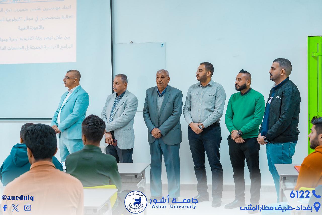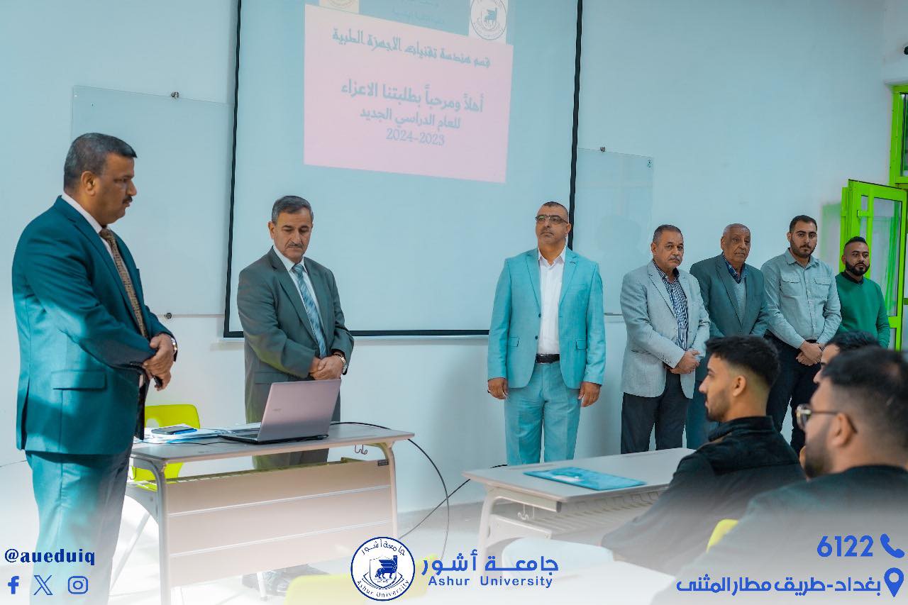 جرى اليوم إستقبال طلبة المرحلة الأولى لقسم هندسة تقنيات الأجهزة الطبية من قبل السيد عميد الكلية التقنية الهندسية في جامعة آشور الاستاذ المساعد الدكتور سعد سامي الخفاجي والكادر التدريسي للقسم حيث رحب السيد العميد بالطلبة متمنياً لهم النجاح والتوفيق وقدم عرضاً حول التعريف بالقسم والنظام الدراسي الجديد المتمثل بمسار بولونيا بعدها تم القيام بجولة وزيارة المختبرات العلمية للقسم للتعريف بالجانب العملي للدراسة وأهميته في تنمية المهارات الأساسية للطلبة في مجال التخصص.