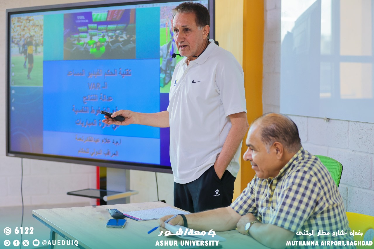 برعاية السيد رئيس جامعة آشور الاستاذ الدكتور كاظم عبود الماجدي المحترم وإشراف الاستاذ الدكتور صريح عبد الكريم عميد كلية التربية البدنية وعلوم الرياضة وحضور عدد من أساتذة الكلية والطلبة ،أقامت الكلية ورشة علمية تحت عنوان تقنية الVAR (عدالة النتائج ورفع الضغوط النفسية في إدارة مباريات كرة القدم ) وذلك يوم السبت الموافق ٢٠٢٤/٥/١١ ،حاضر فيها ا.م.د علاء عبد القادر التدريسي في الكلية، وتحدث فيها قائلا ،تعتبر تقنية الVAR تقنية تكنولوجية حديثة دخلت في إدارة مباريات كرة القدم واتسمت بفوائدها في التخفيف من الضغوط النفسية التي يتعرض لها حكم مباريات كرة القدم إضافة إلى مساعدته في اتخاذ القرارات الصعبة في معالجة الحالات التي تحدث داخل الساحة .وأكد السيد المحاضر رغم فوائد هذه التقنية إلا أن الحكم يبقى هو صاحب السلطة التقديرية وفقا للقانون في اتخاذ القرارات .وفي نهاية المحاضرة أشاد الحضور بالمعلومات التي تطرق لها المحاضر .